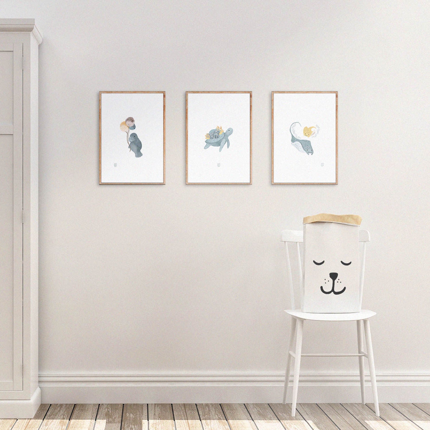 Designed to be a set of 3 little friends goings to a birthday party. Along with the baby manatee and the swimming manta rays.