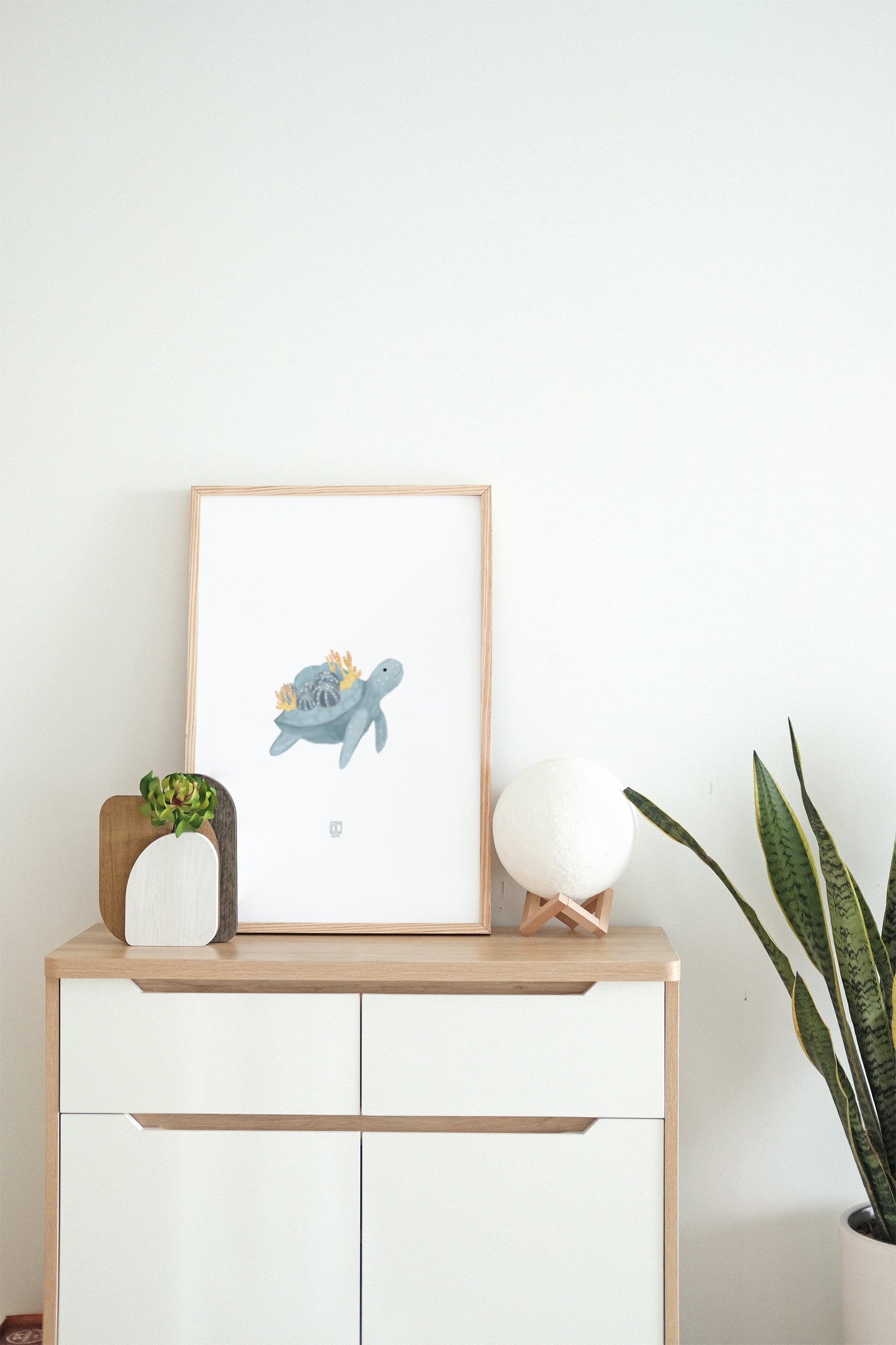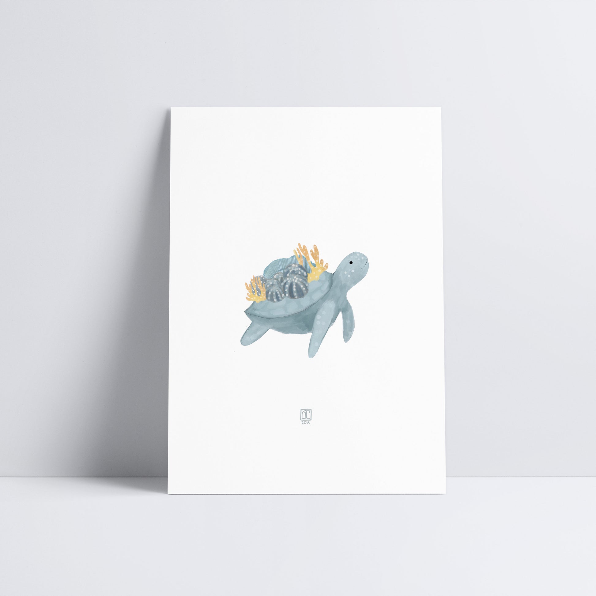 A gentle sea turtle glides through the waters. Perfect for home decor (especially in a nursery!) or a gift to a marine animal lover.