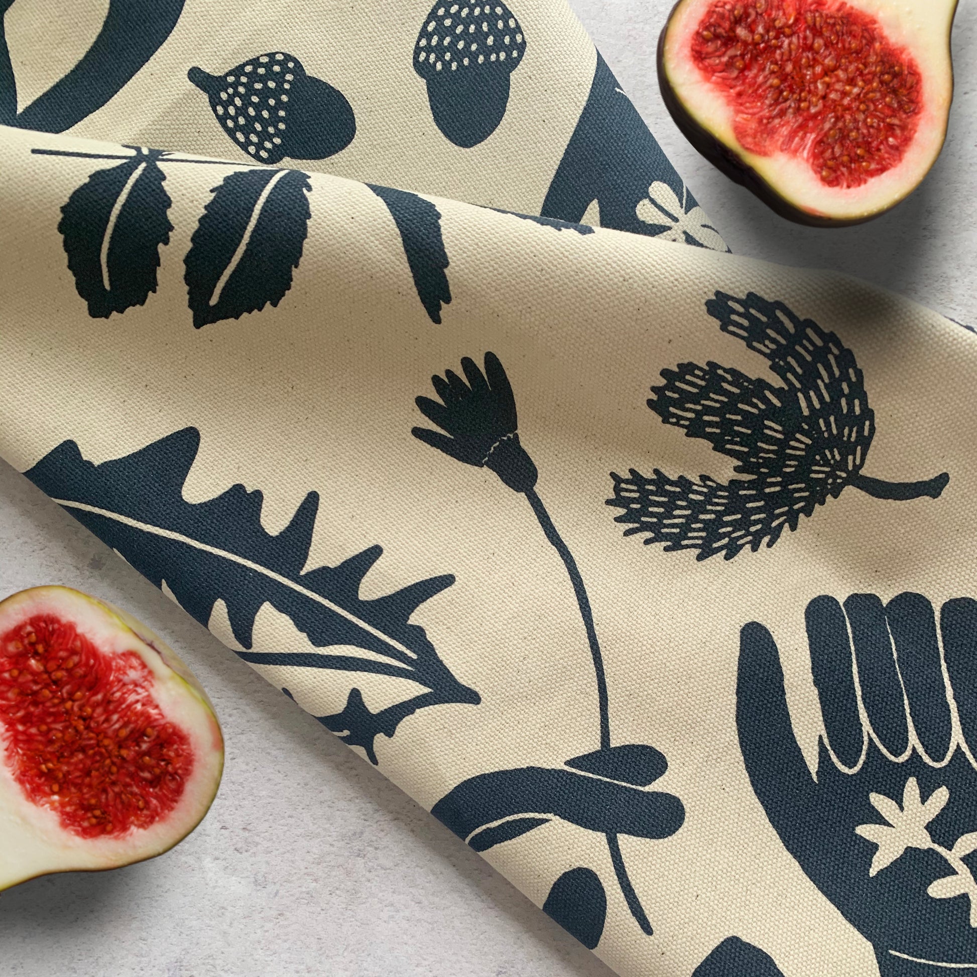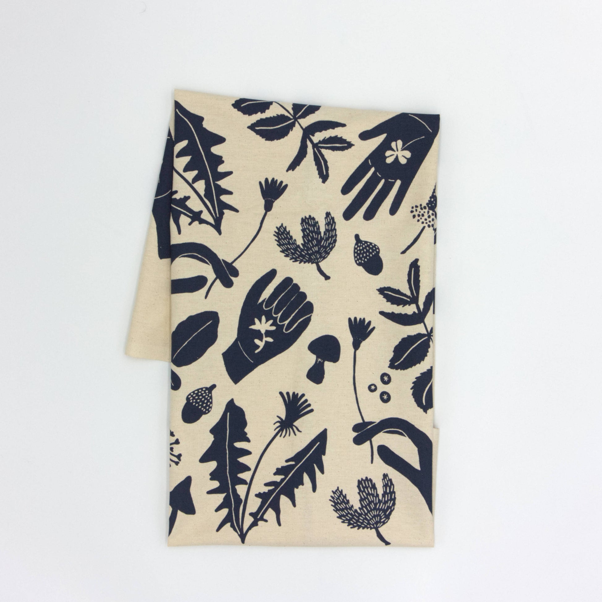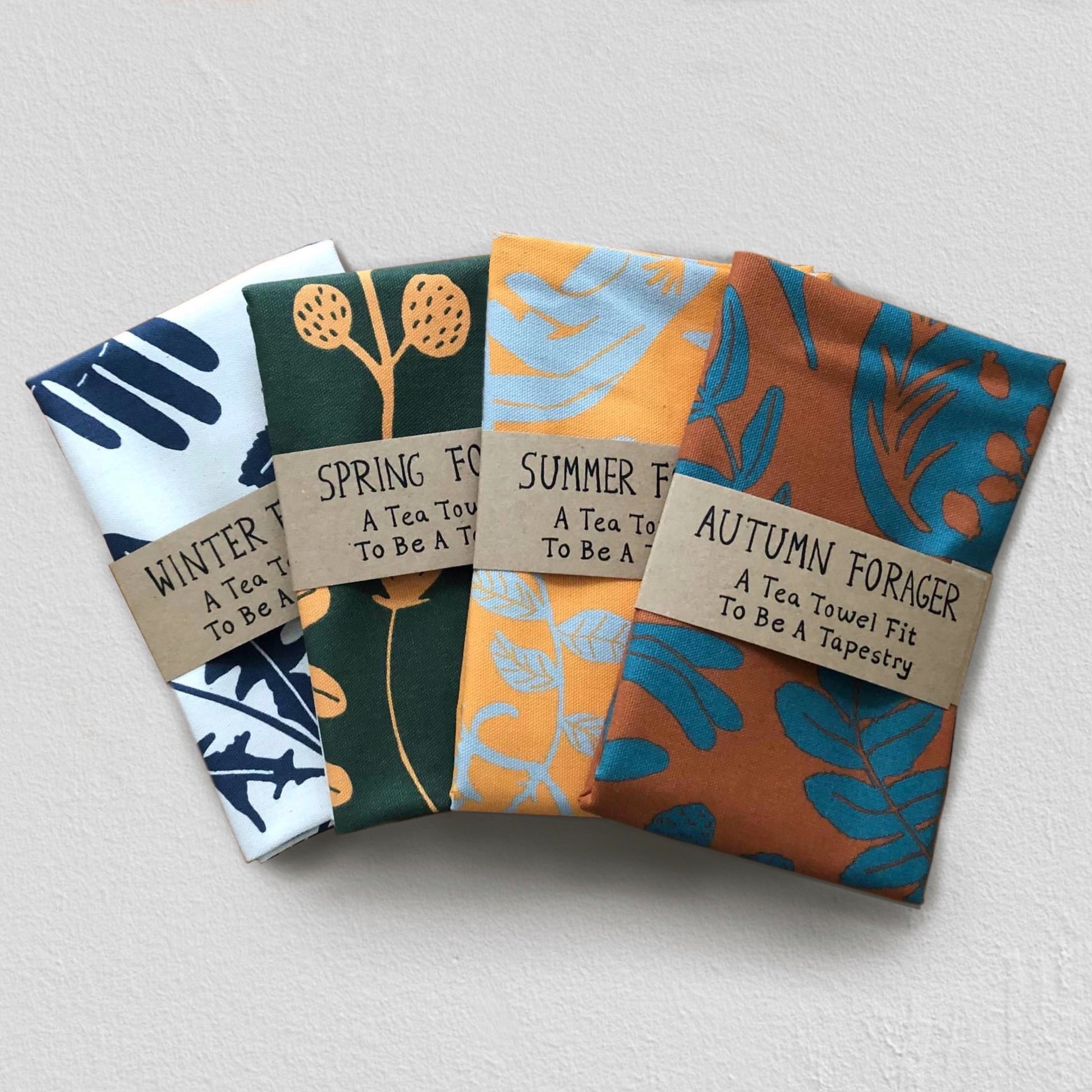 Winter Forager tea towel is inspired by our connection to nature, food and sustainability. It is part of a tea towel set focusing on the seasons and different foraging finds in each.